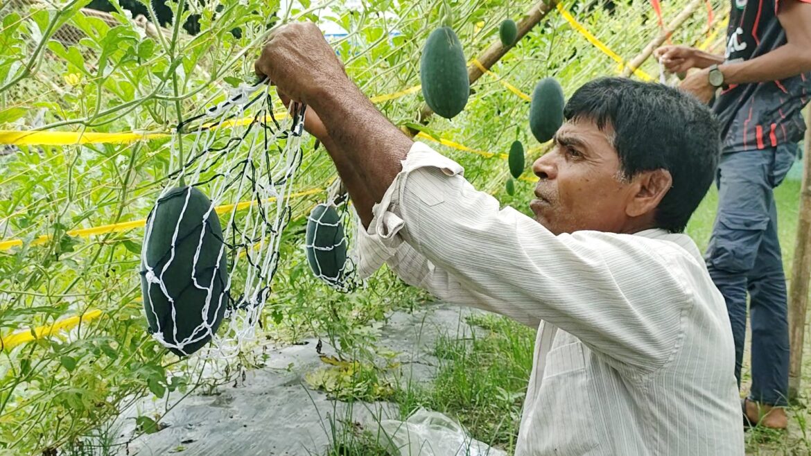 মাচায় ও মালচিং পদ্ধতিতে উচ্চ ফলনশীল হাইব্রিড মার্সেলো জাতের তরমুজ চাষে সফলতা পেয়েছেন নওগাঁর চাষিরা। এই পদ্ধতিতে চাষ করা তরমুজের অধিক ফলনে তারা খুশি।